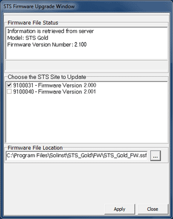El nuevo firmware se cargará en el controlador del STS Gold de la estación remota la próxima vez que la estación remota informe a la estación doméstica.