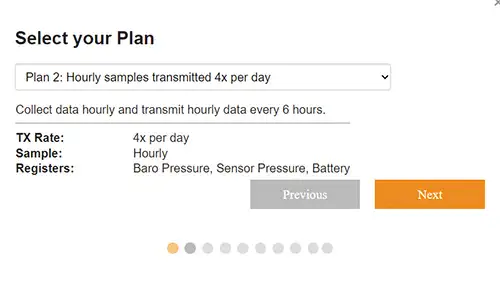 - Utilisez le menu déroulant pour sélectionner le plan de données avec lequel votre SolSat 5 a été enregistré. Cliquez sur Suivant.