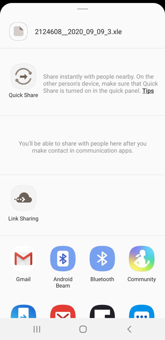 On an Android device you will be provided with multiple options for sharing the *.xle file, including e-mail.