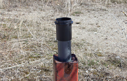 - Slide the well cap base onto the well casing. Do not secure it at this point.