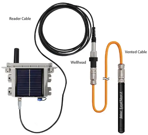 A LevelVent is connected to the SolSat 5 using a 6 foot long Reader Cable connected to the LevelVent Wellhead.
