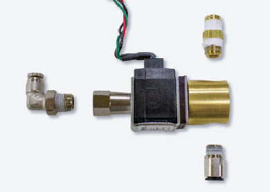 - Screw the new Solenoid Valve Assembly into the Shuttle Valve Assembly. Screw the two fittings back into the Shuttle Valve Assembly.